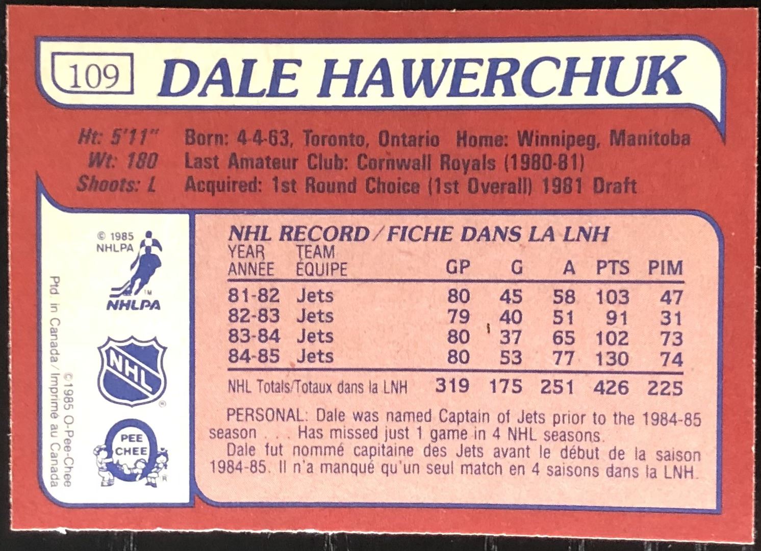 Card #109 NHL, hockey, OPC, vintage, hall of fame