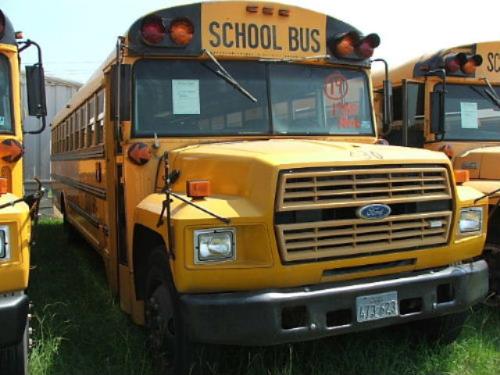 1985 FORD SCHOOL BUS/71 PASSENGER/THOMAS/AUTOMATIC/GAS ENGINE-370-2V/AIR BRAKES/INSPECTION: 10/06/MILEAGE: 155,915, TIRES: FAIR CONDITION/BODY: FAIR CONDITION, SOME PAINT FADING, SEATS: FAIR TO POOR. (RUNNING CONDITION)
