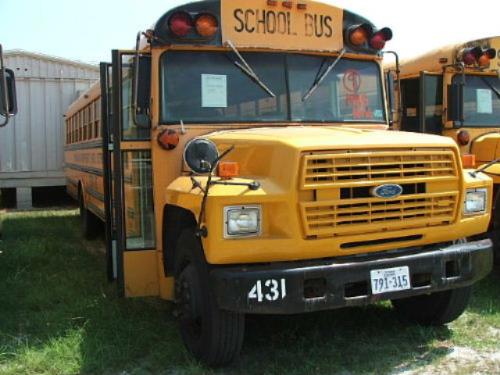 1985 FORD SCHOOL BUS/71 PASSENGER/THOMAS/GAS ENGINE-370-2V/AUTOMATIC/AIR BRAKES/INSPECTION: 07/06/MILEAGE: 160,489, TIRES: FAIR CONDITION/BODY: FAIR, SCRATCHES, MISSING (1) FRONT MIRROR, SEATS: POOR. (RUNNING CONDITION)