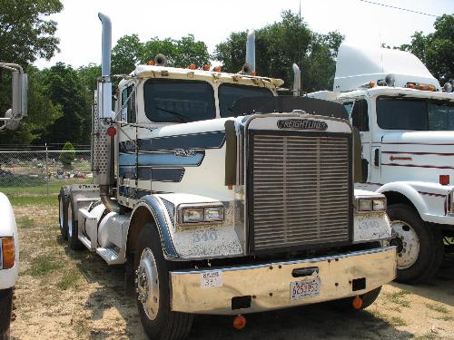 1985 FREIGHTLINER T/A TRUCK TRACTOR, S/N H254715, 400 CUMMINS ENG, 9 SPD TRANS 40K REARS, 12K FRONTS, A/C, P/S, REAR HEADACHE RACK, WET KIT, 11R24.5 TIRES STEEL RIMS