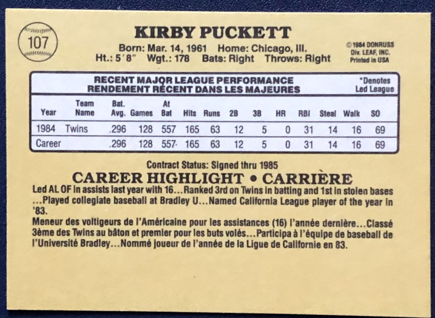 Card #107 MLB, baseball, vintage, hall of fame, rookie
