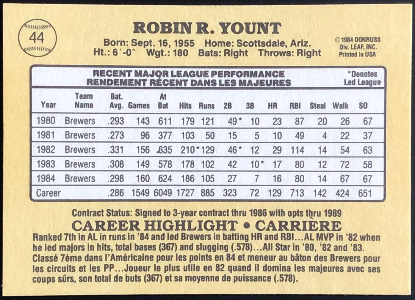 Card #44 MLB, baseball, hall of fame, Donruss, vintage