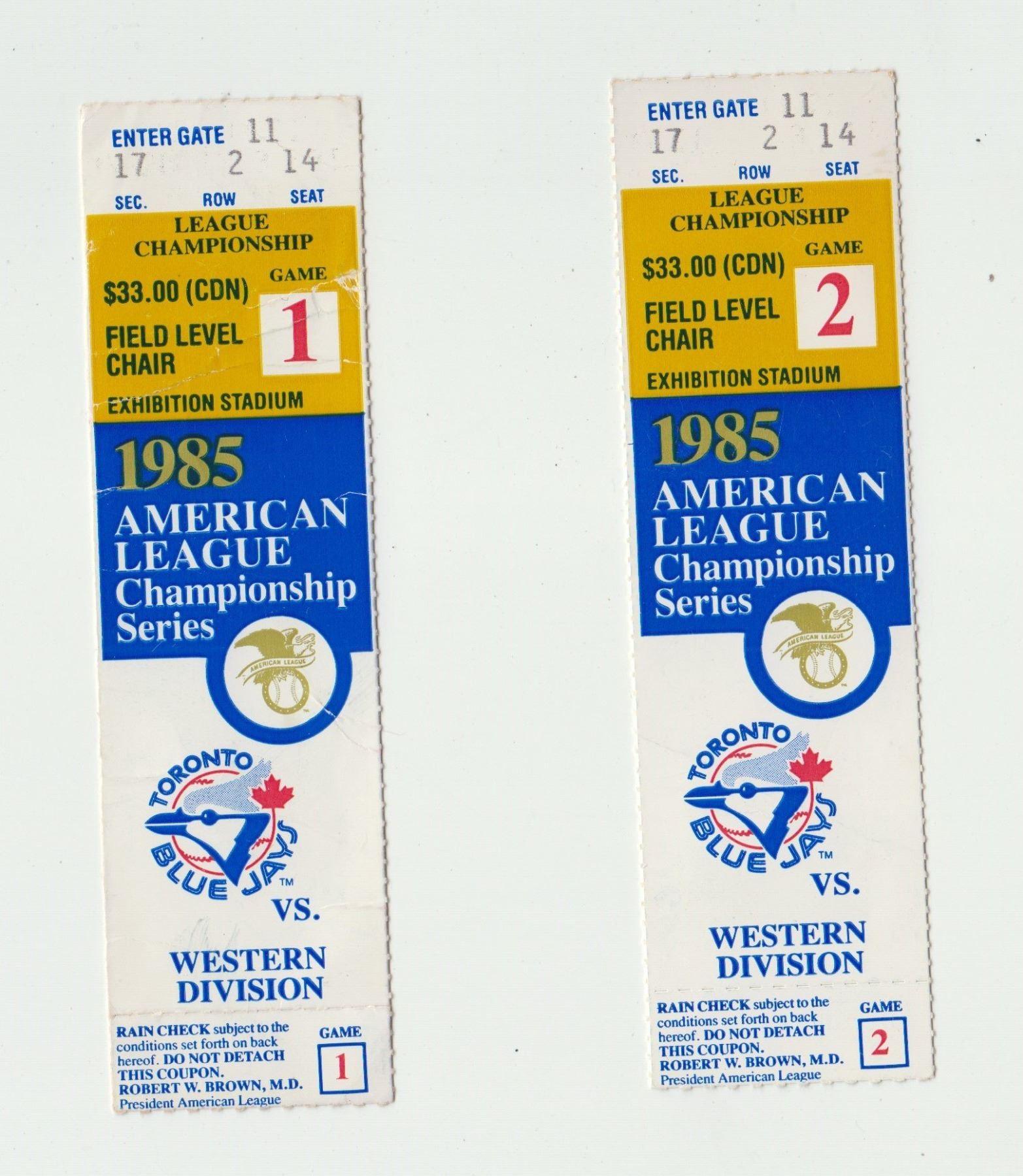 1985 Toronto Blue Jays ALCS Games 1 & 2 Tickets