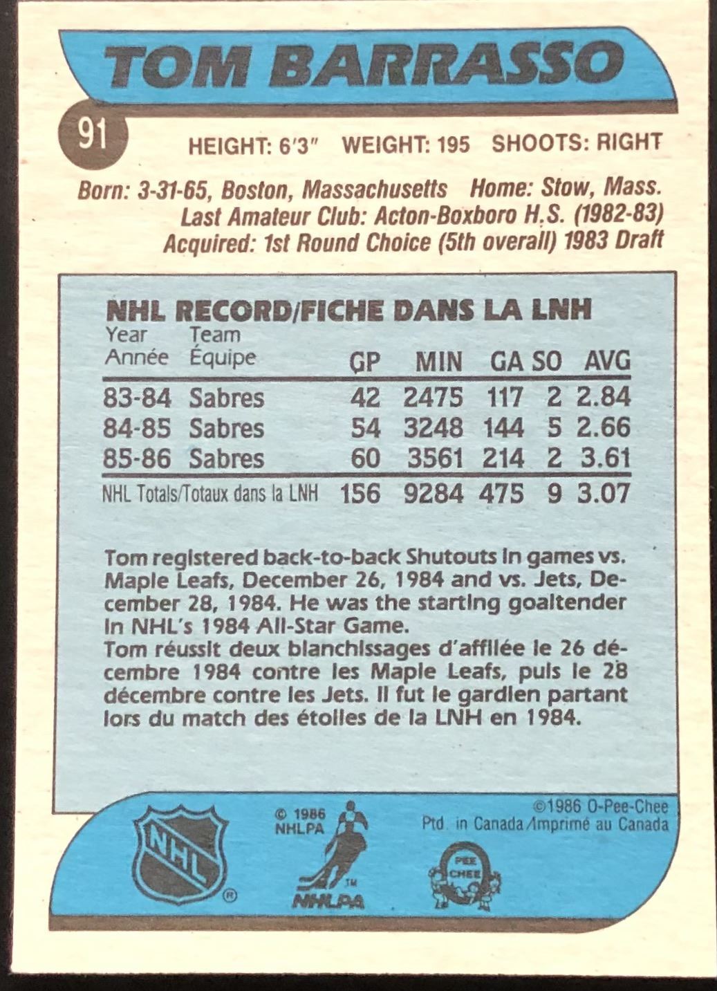 Card #91 NHL, hockey, vintage, OPC, hall of fame