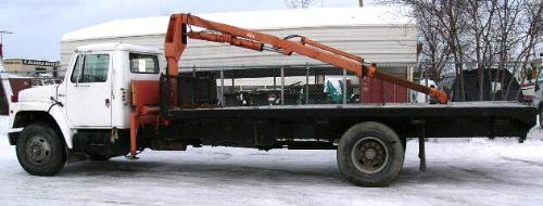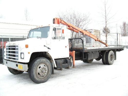 1986 International S-1900 truck 19-1/2' flatbed, WAJAX frame mounted boom, diesel, manual transmission- VIN # 1HTLDUXP6GXA40998- VIN engine # GHA40998, campaign # 87501, model A 1954, 410,998 kilometers- minimum bid of $5,000 (6)