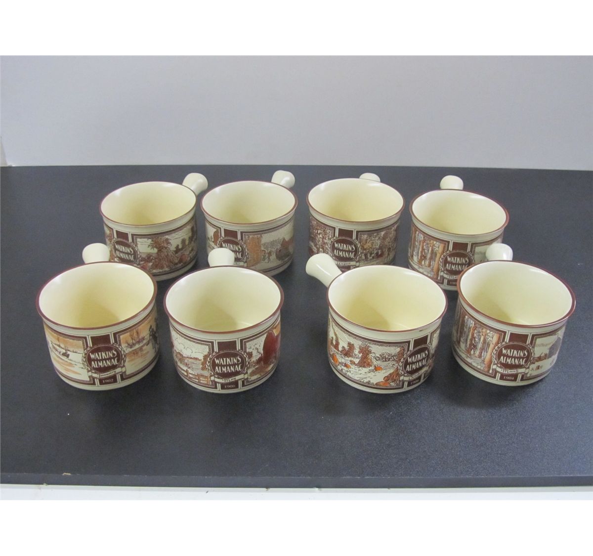 1986 Watkins Inc. Soup Bowls with Depiction of Watkins Alamanac From August 1908, Set Of 8