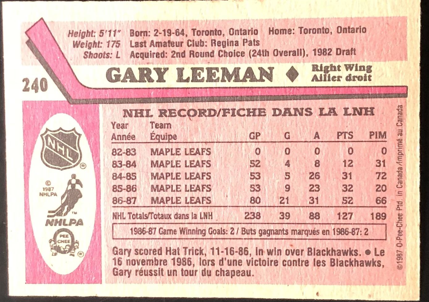 Card #240 NHL, hockey, vintage, OPC