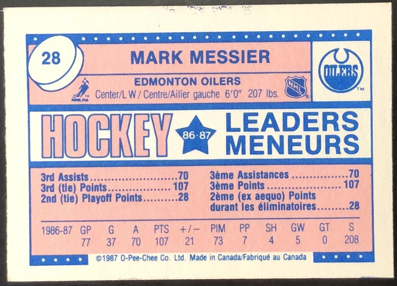 Card #28 NHL, hockey, vintage, OPC, hall of fame