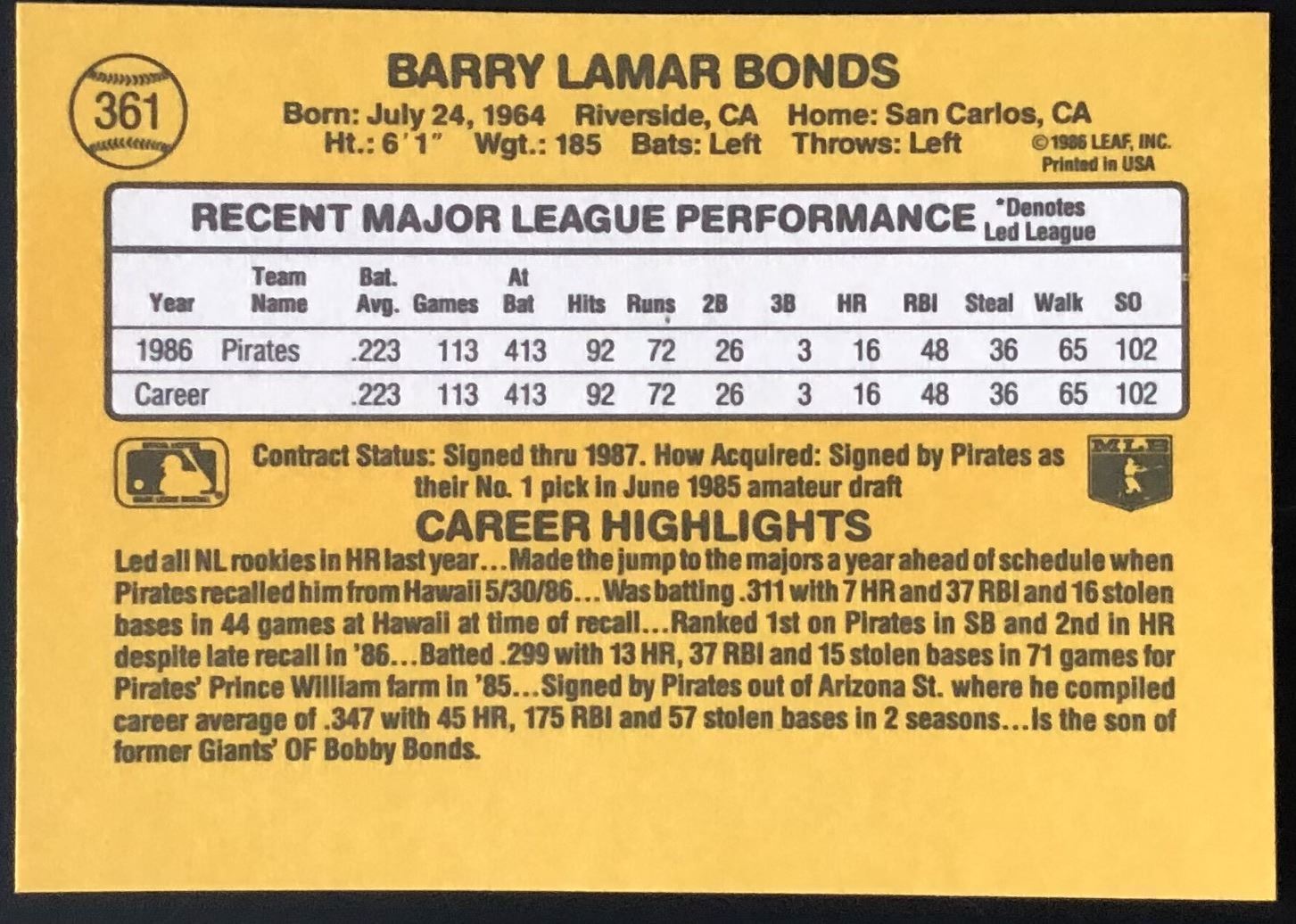 Card #361 MLB, baseball, rookie