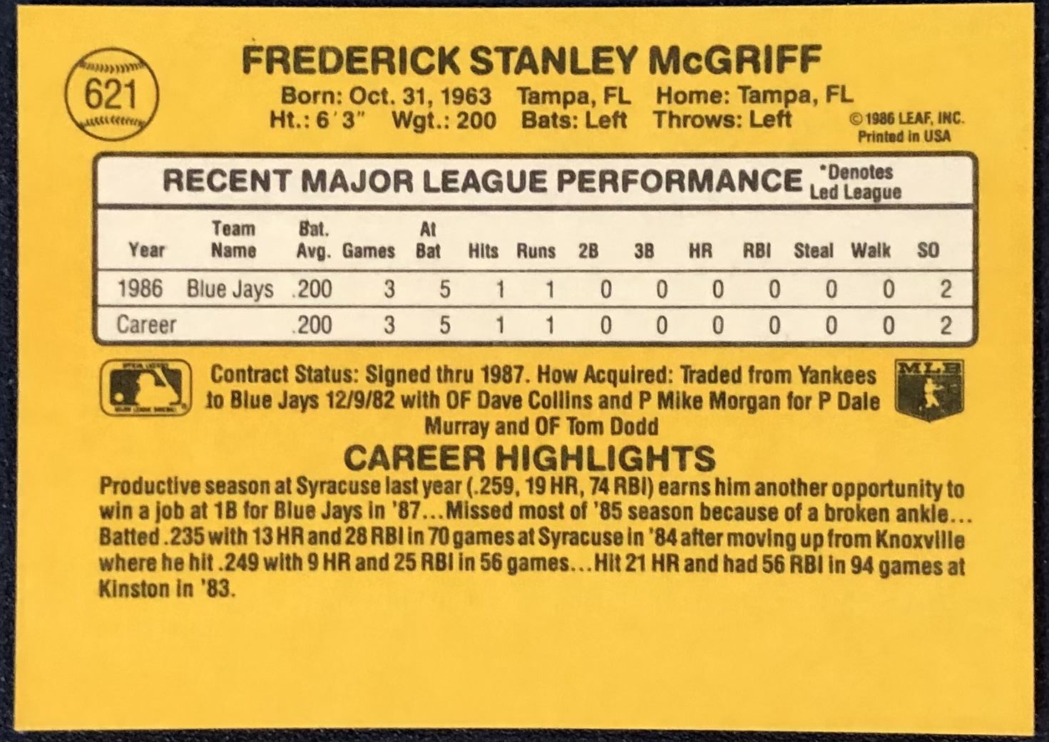 Card #621 MLB, baseball, vintage, rookie, hall of fame