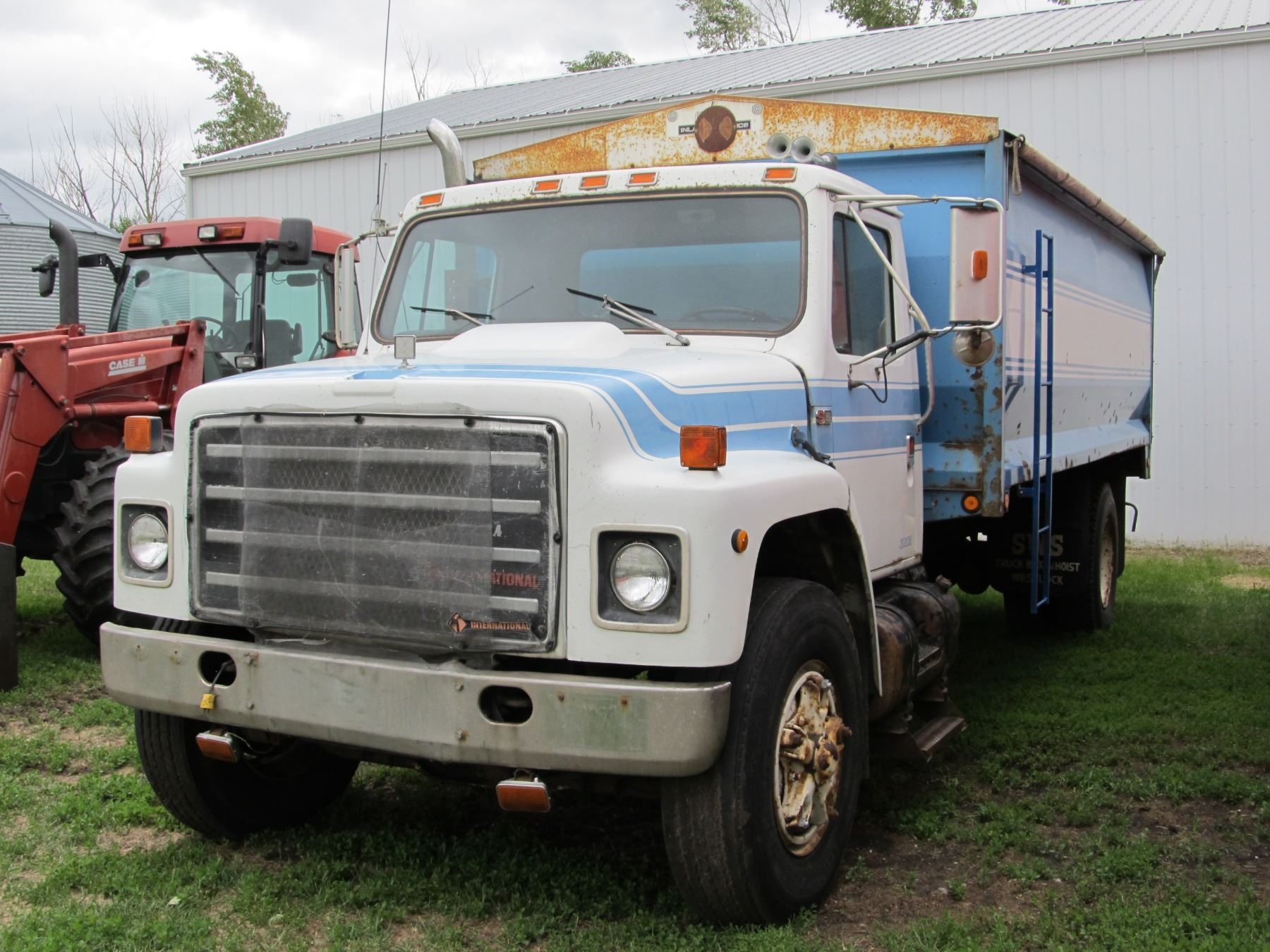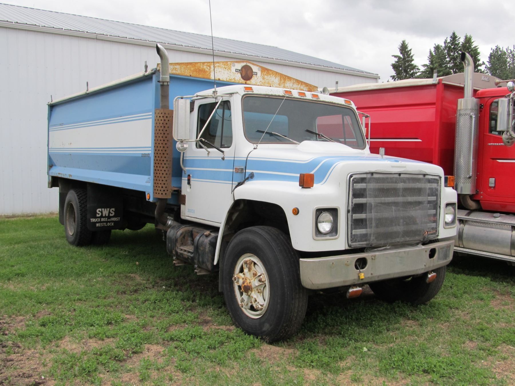 IH 466 DIESEL; 10 SPEED ROAD RANGER; ON AIR; C/W 17' X 60' STEEL BOX AND NORDIC HOIST; ROLL TARP; SHOWING 56,483 KM; SN #1HTLDTVM8HH478769
