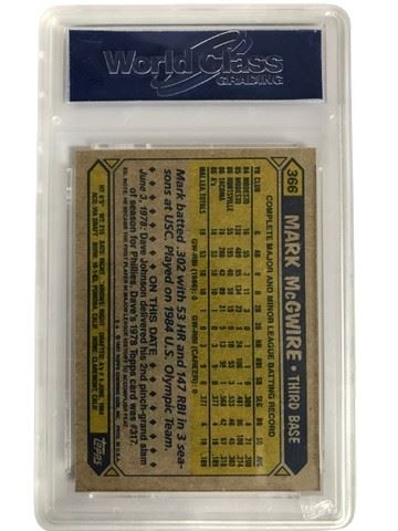 1987 Topps Mark McGwire Oakland A's rookie card # 366, graded 10, gem mint by WCG.