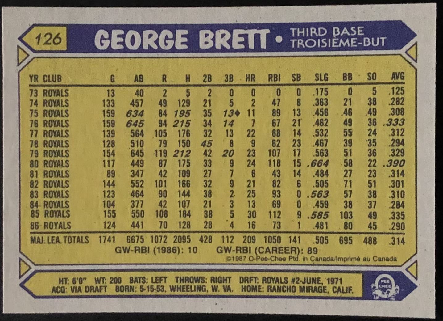 Card #126 OPC, baseball, MLB, vintage, hall of fame
