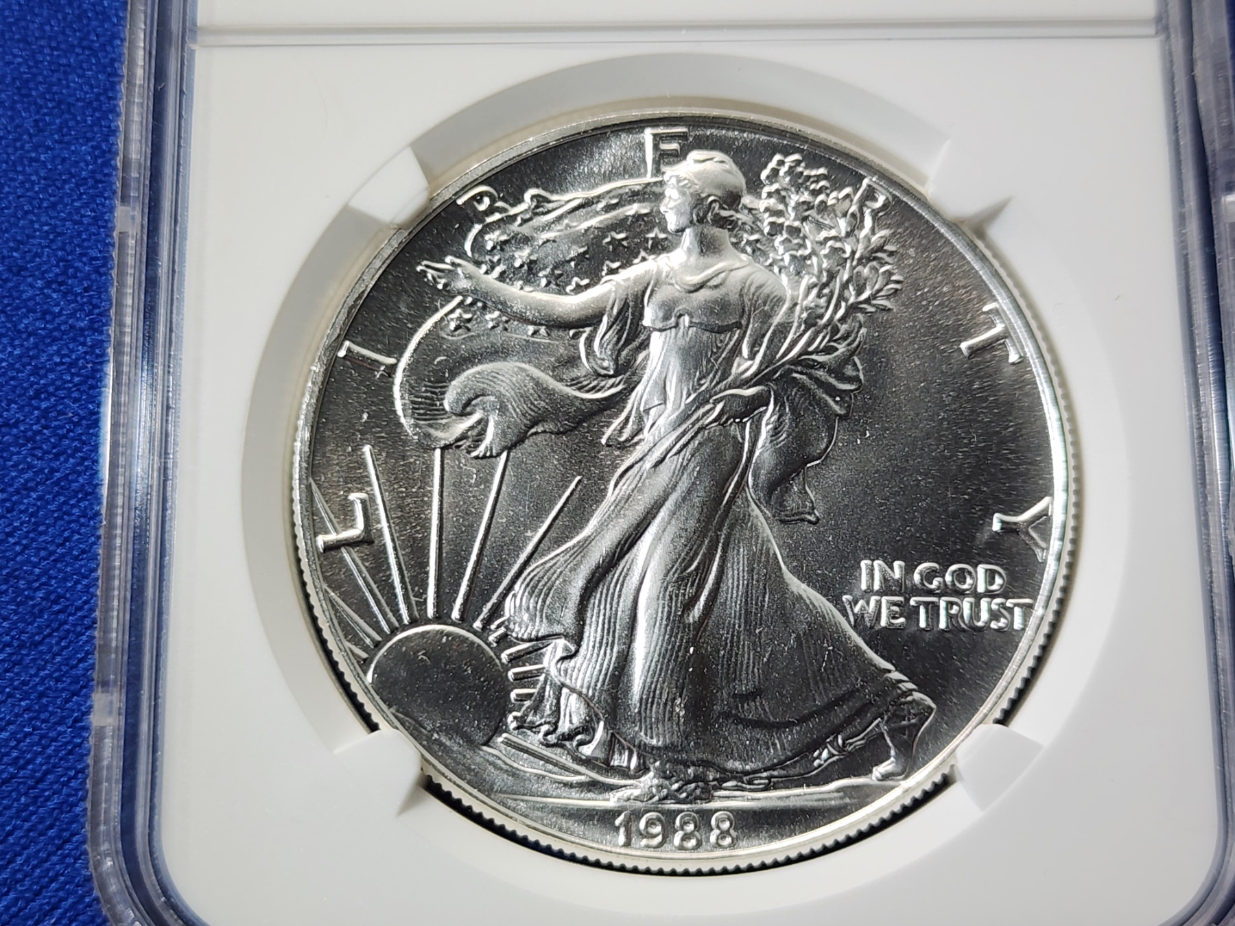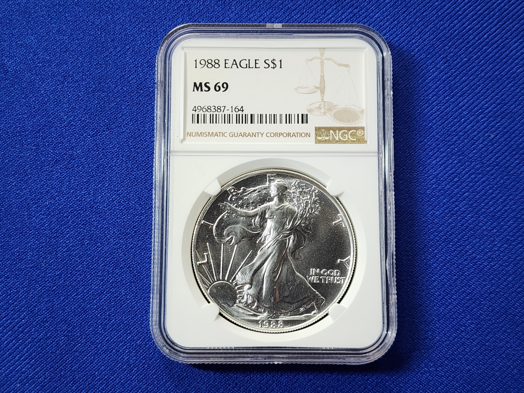 1988 $1 American Siver Eagle 1 oz Fine Silver Graded by NGC MS 69