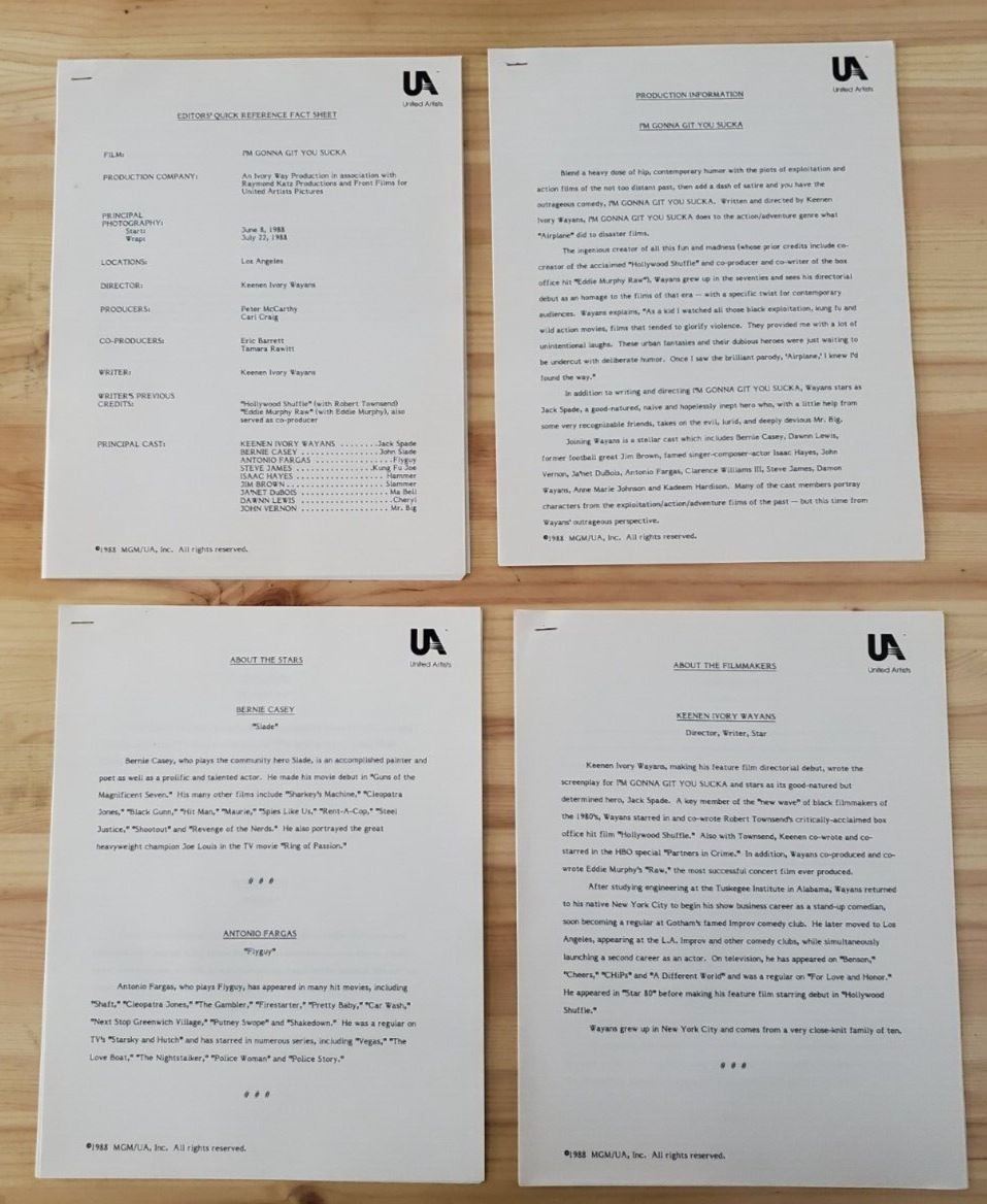 1988 I'm Gonna Git You Sucka Movie Promo Package with 8 promos of cast. Condition: Sold As Is (Please see pictures.)