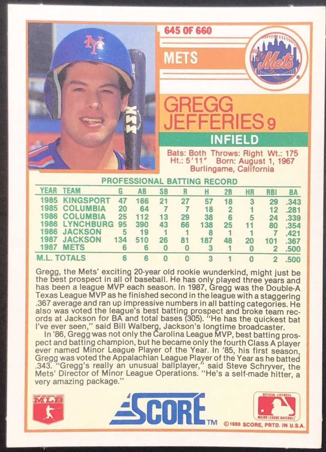 Card #645 MLB, baseball, rookie