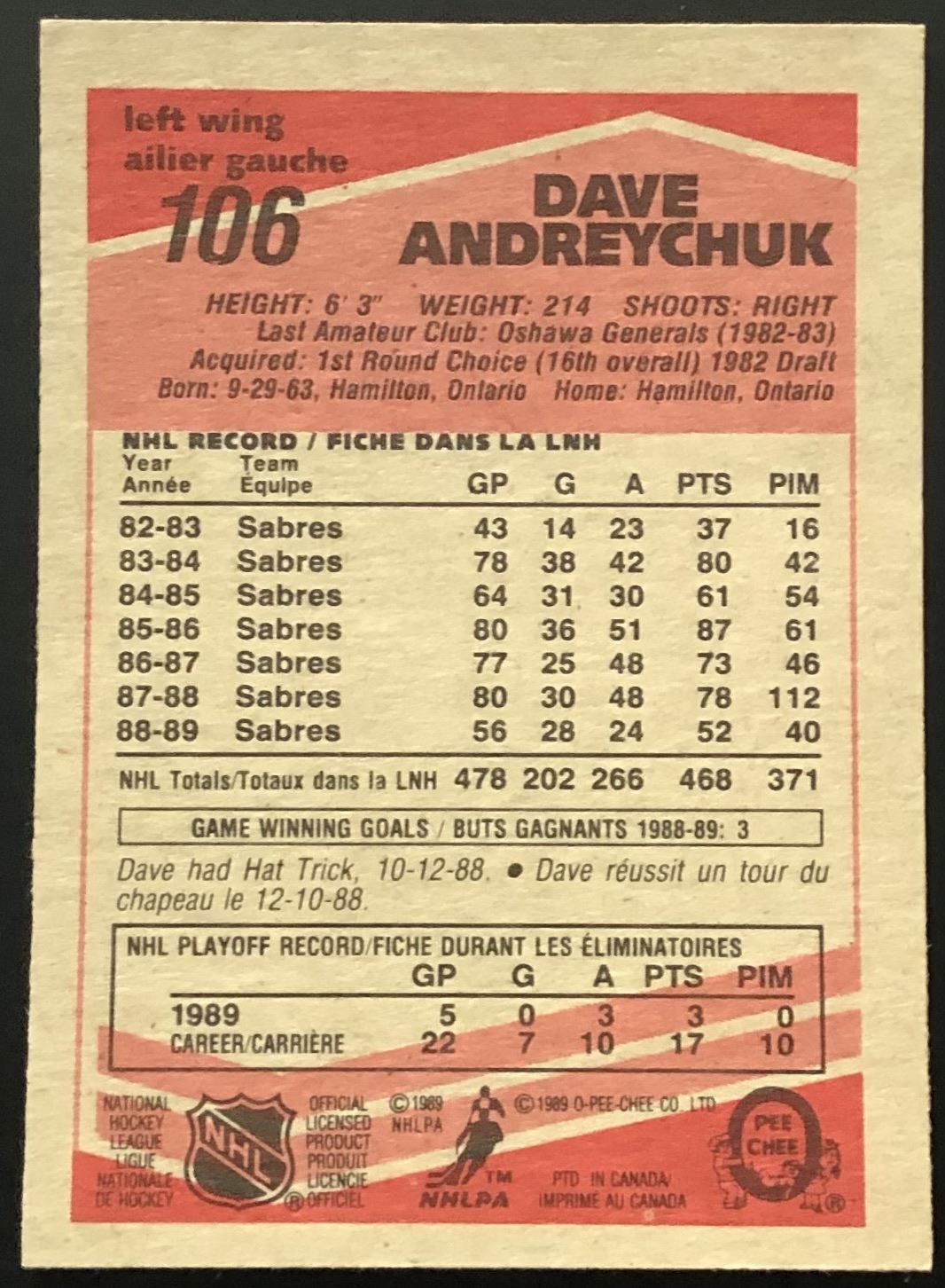Card #106 OPC, NHL, hockey, hall of fame