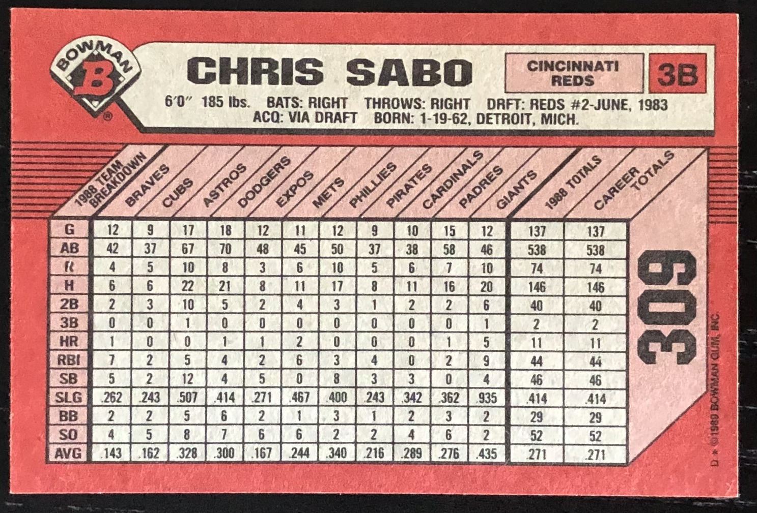Card #309 MLB, baseball, TOPPS, rookie