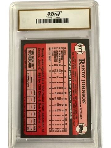 1989 Topps traded Randy Johnson Mariners trading card. Professionally graded by Mint Grading Service. #57T.