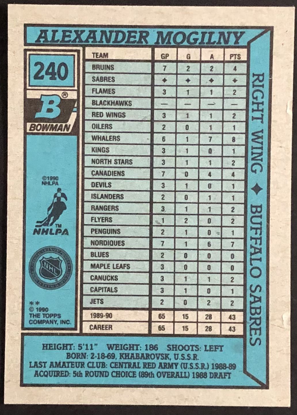 Card #240 NHL, hockey, hall of fame, OPC, rookie