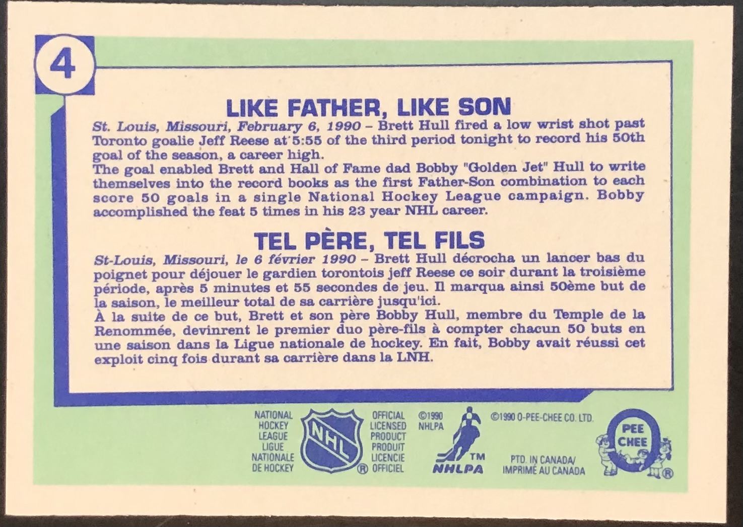 Card #4 OPC, NHL, hockey, hall of fame