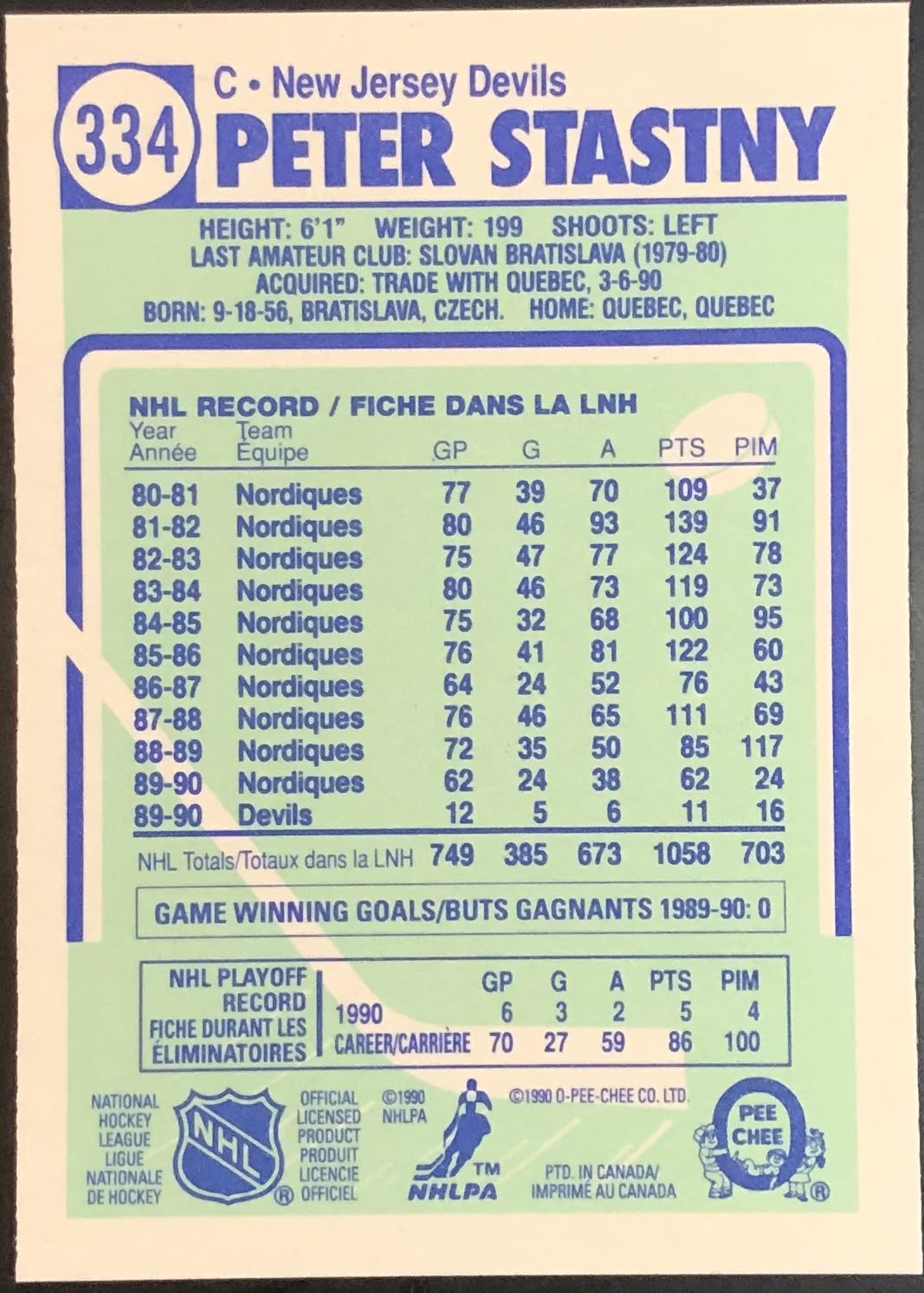 Card #334 OPC, NHL, hockey, hall of fame