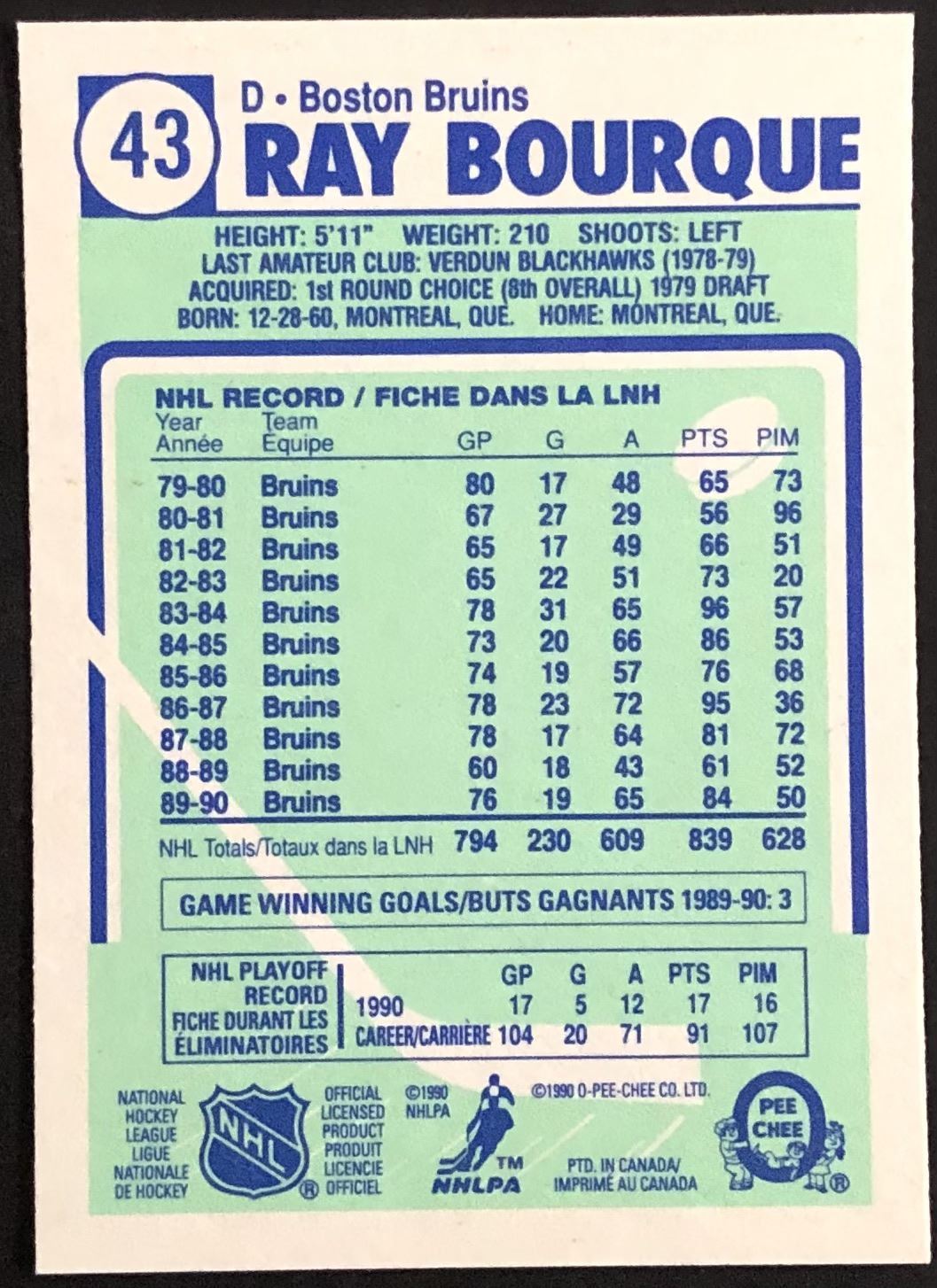 Card #43 NHL, hockey, hall of fame, OPC