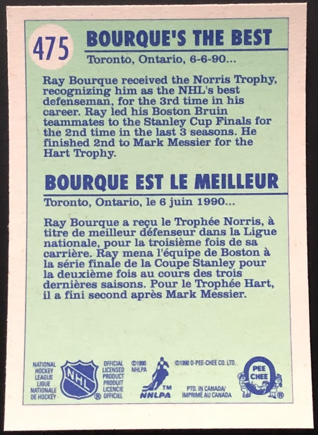 Card #475 OPC, NHL, hockey, hall of fame