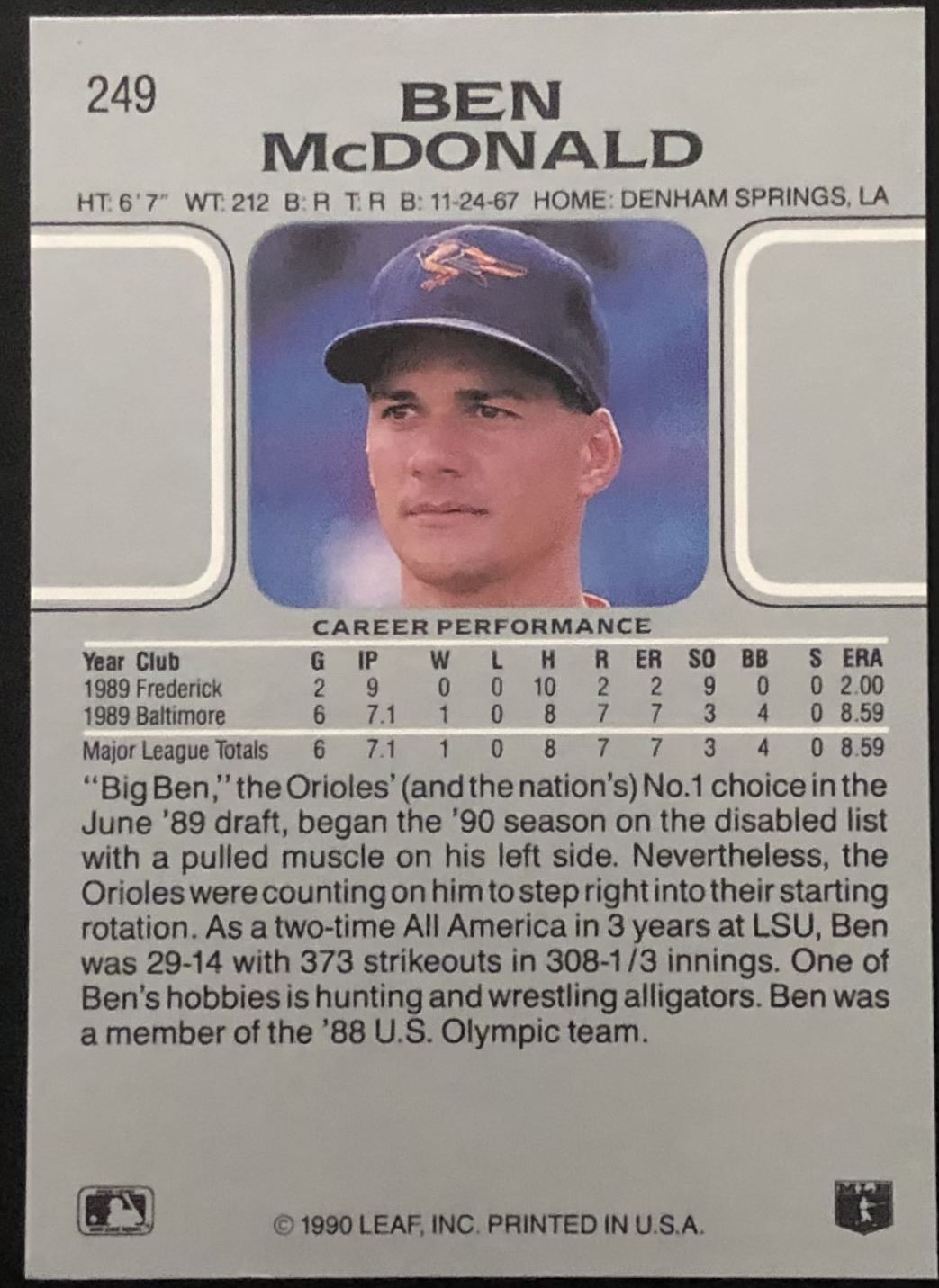 Card #249 baseball, MLB, rookie