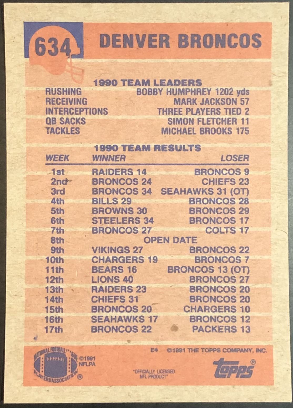 Card #634 NFL, football, hall of fame