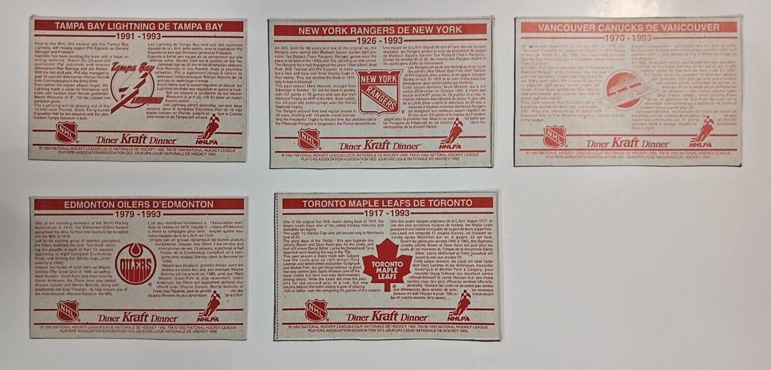 1992-93 Kraft Dinner Hockey Hand Cut Team x5