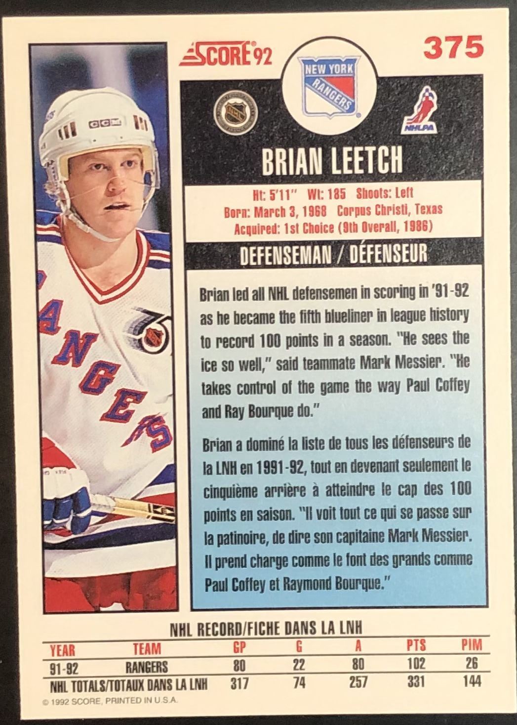 Card #375 NHL, hockey, hall of fame