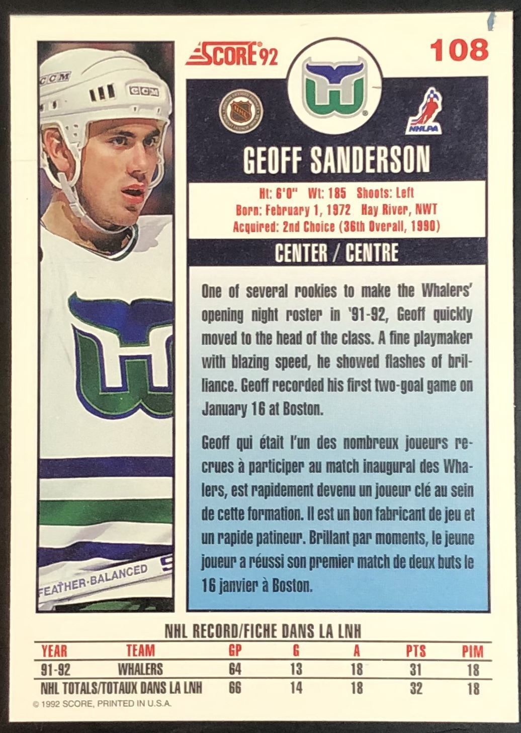 Card #108 hockey, rookie