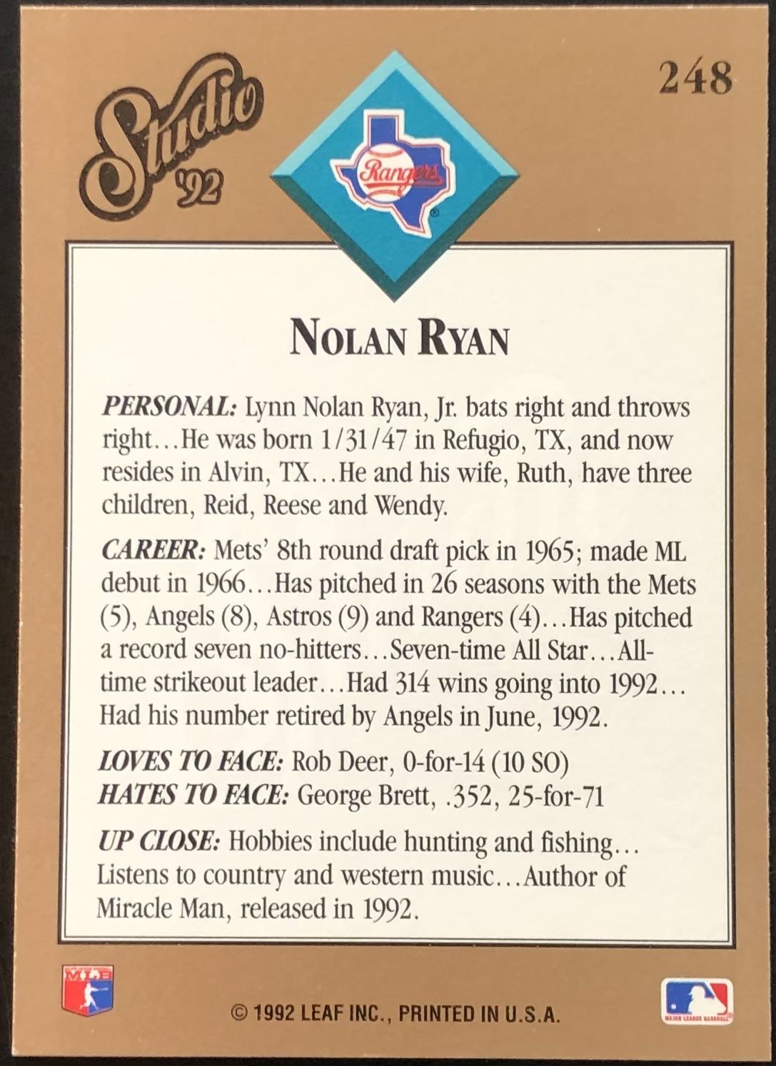 Card #248 MLB, baseball, hall of fame