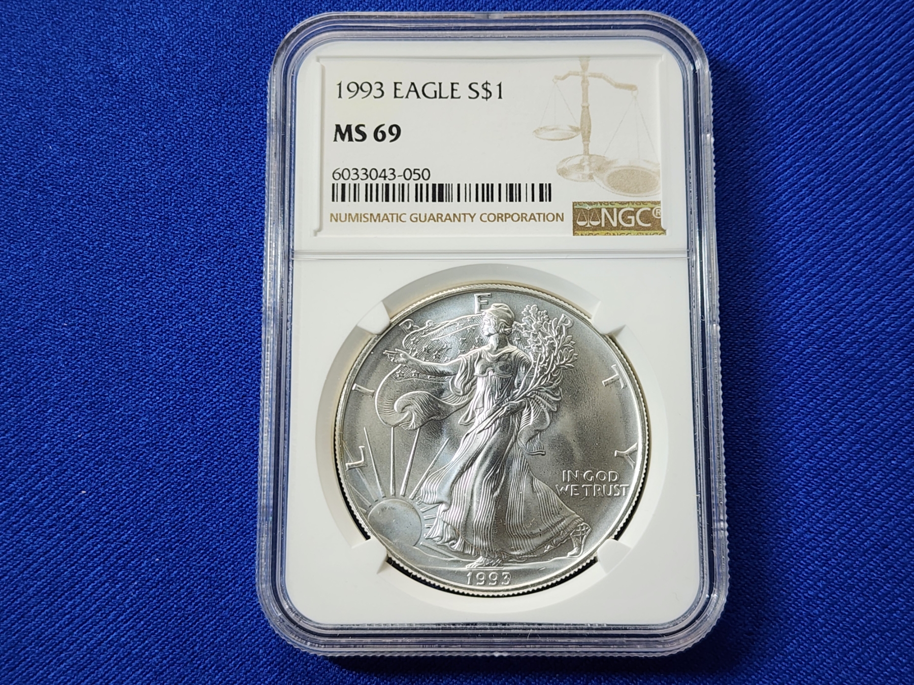 1993 $1 American Siver Eagle 1 oz Fine Silver Graded by NGC MS 69