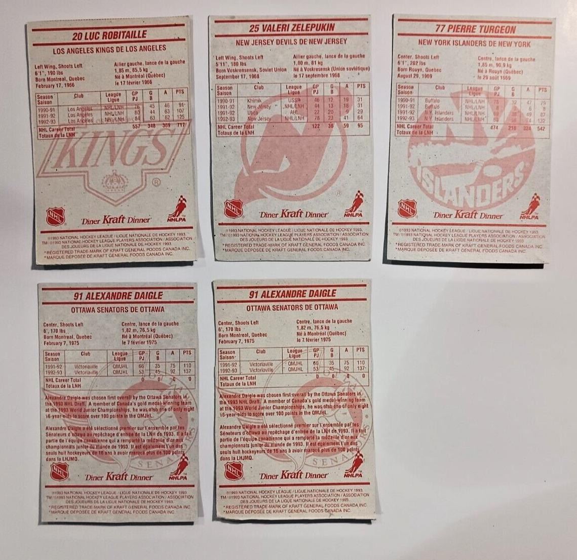 1993-94 Kraft Dinner Hockey Hand Cut Collectors x5