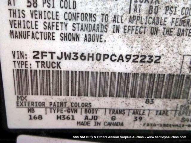 1993 Ford F-350 PICKUP 4X4 ~ 86,385 MILES VIN: 2FTJW36H0PCA92232, PICKUP, 4WD, V8, 5.8L, GREEN, A/C DEAD, 1/4 TANK GAS, RIGHT SIDE CRUSHED IN, SFSW TITLE #: 14269034X460729 2 KEYS FA-54267 G83227
