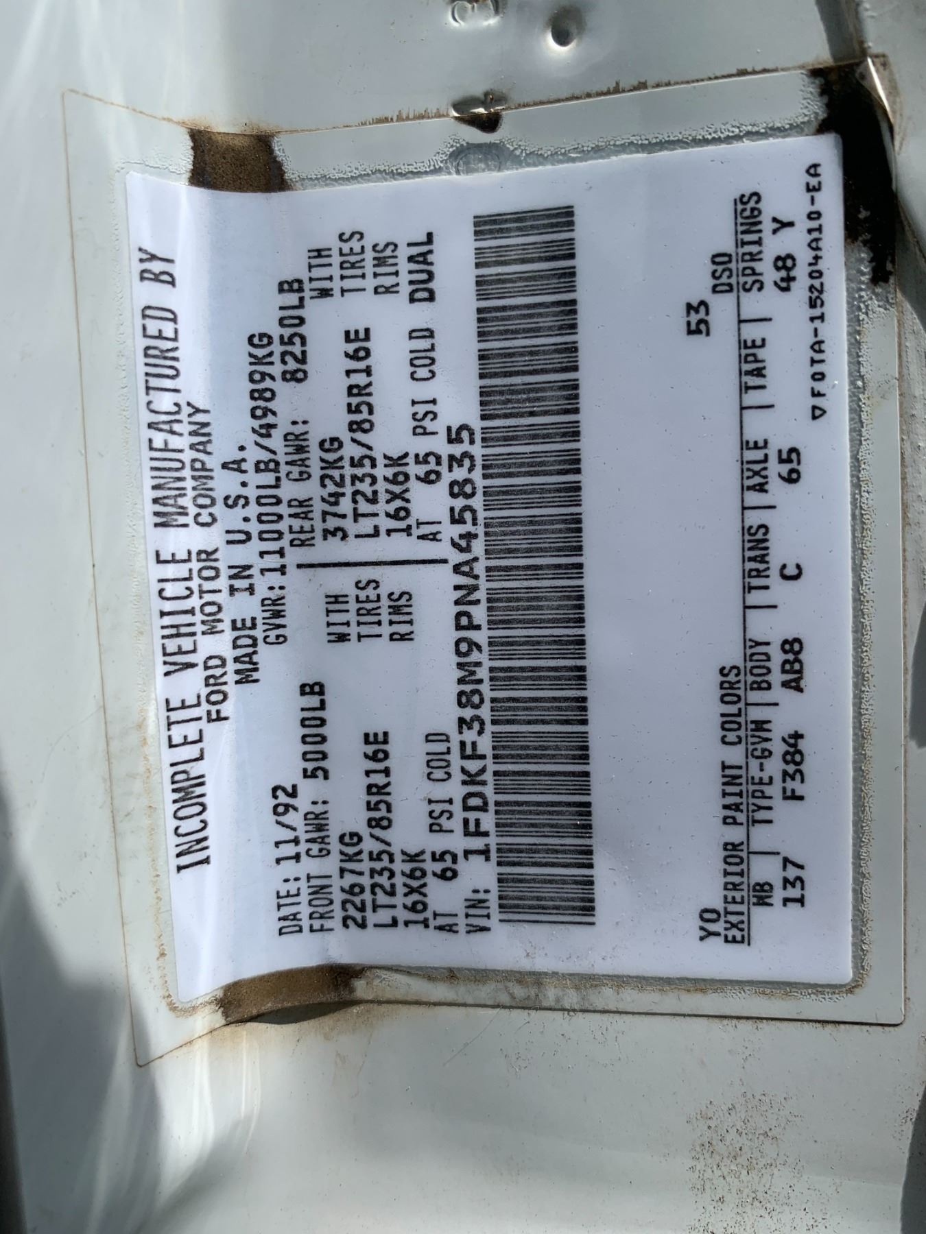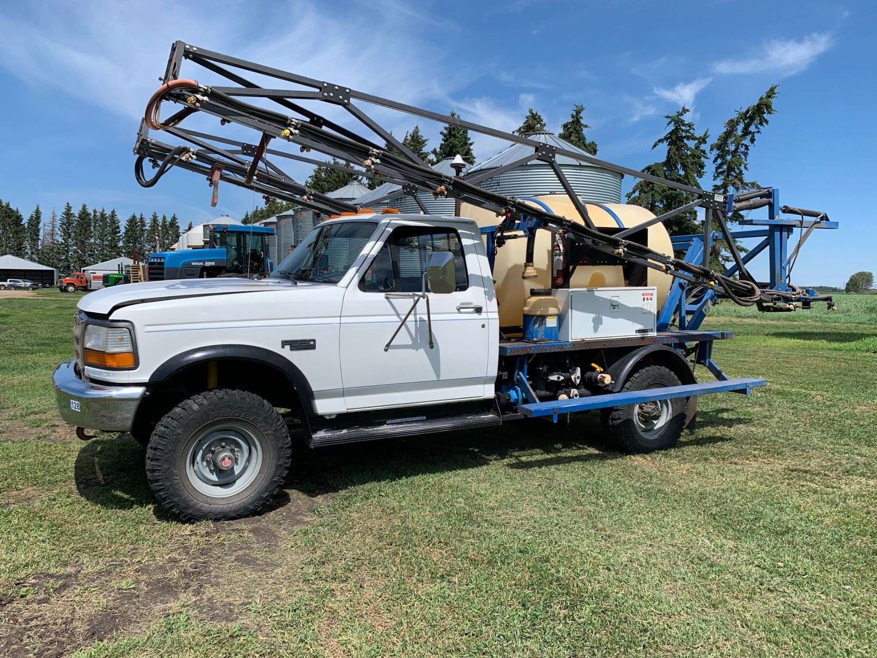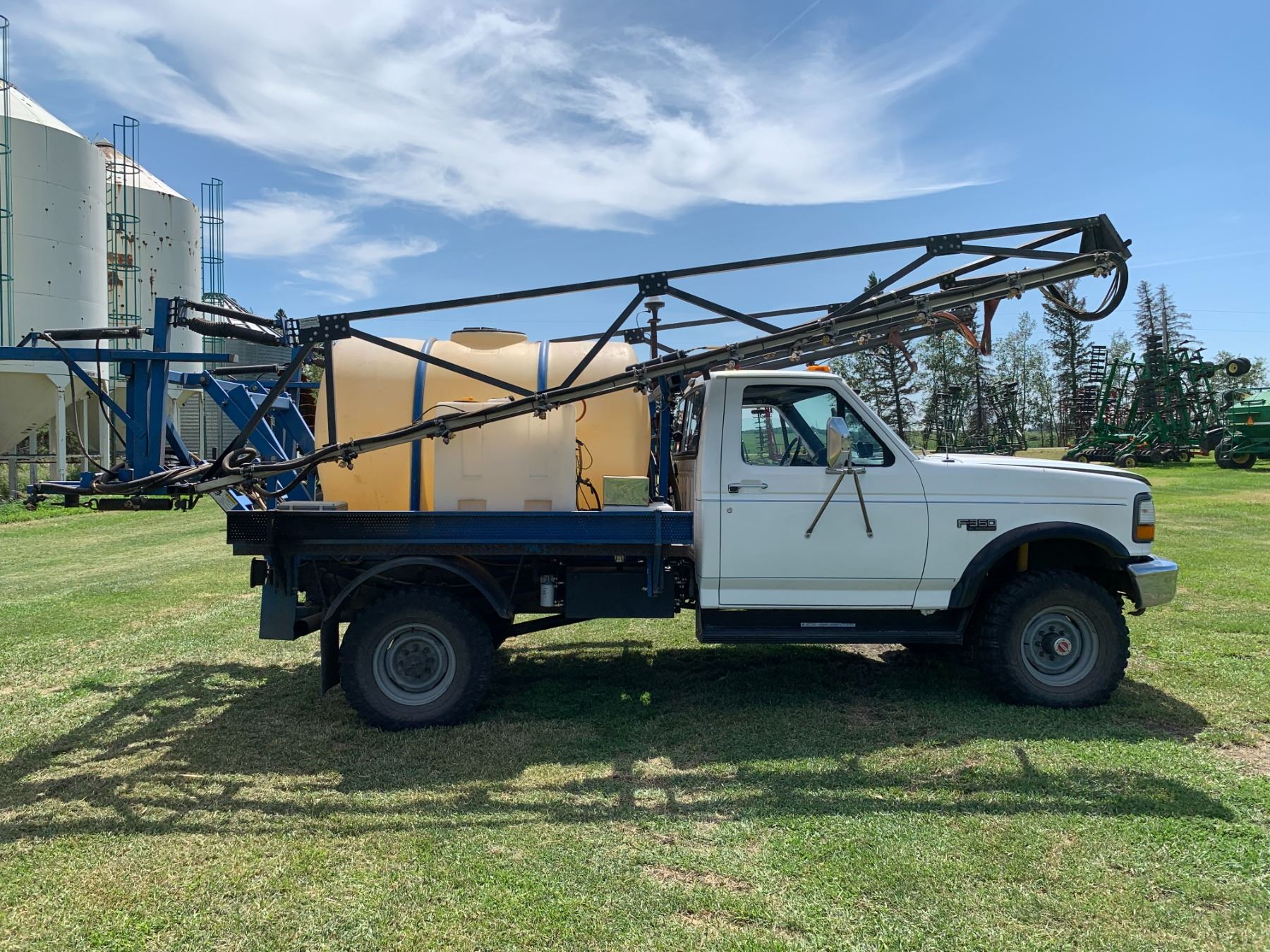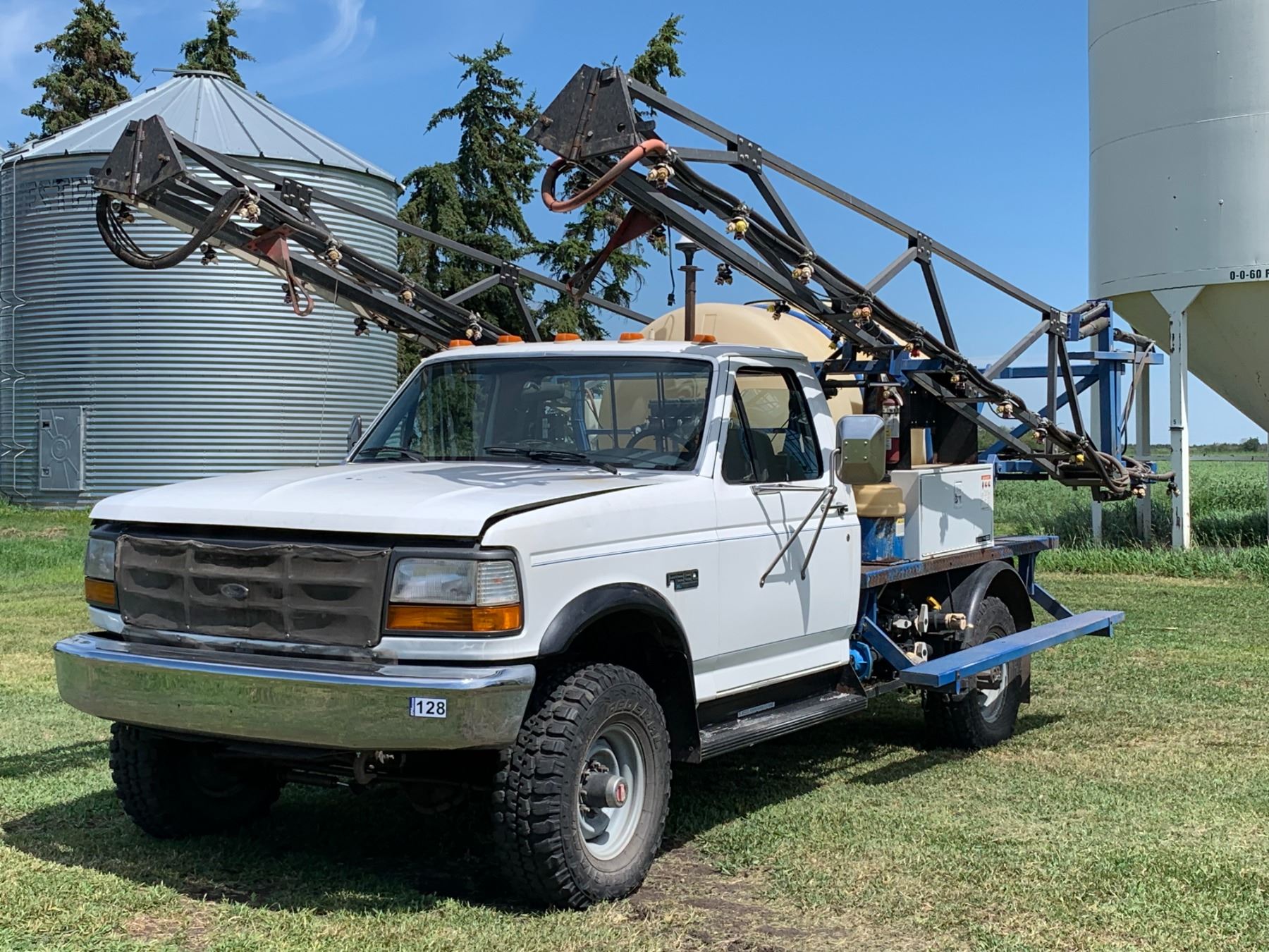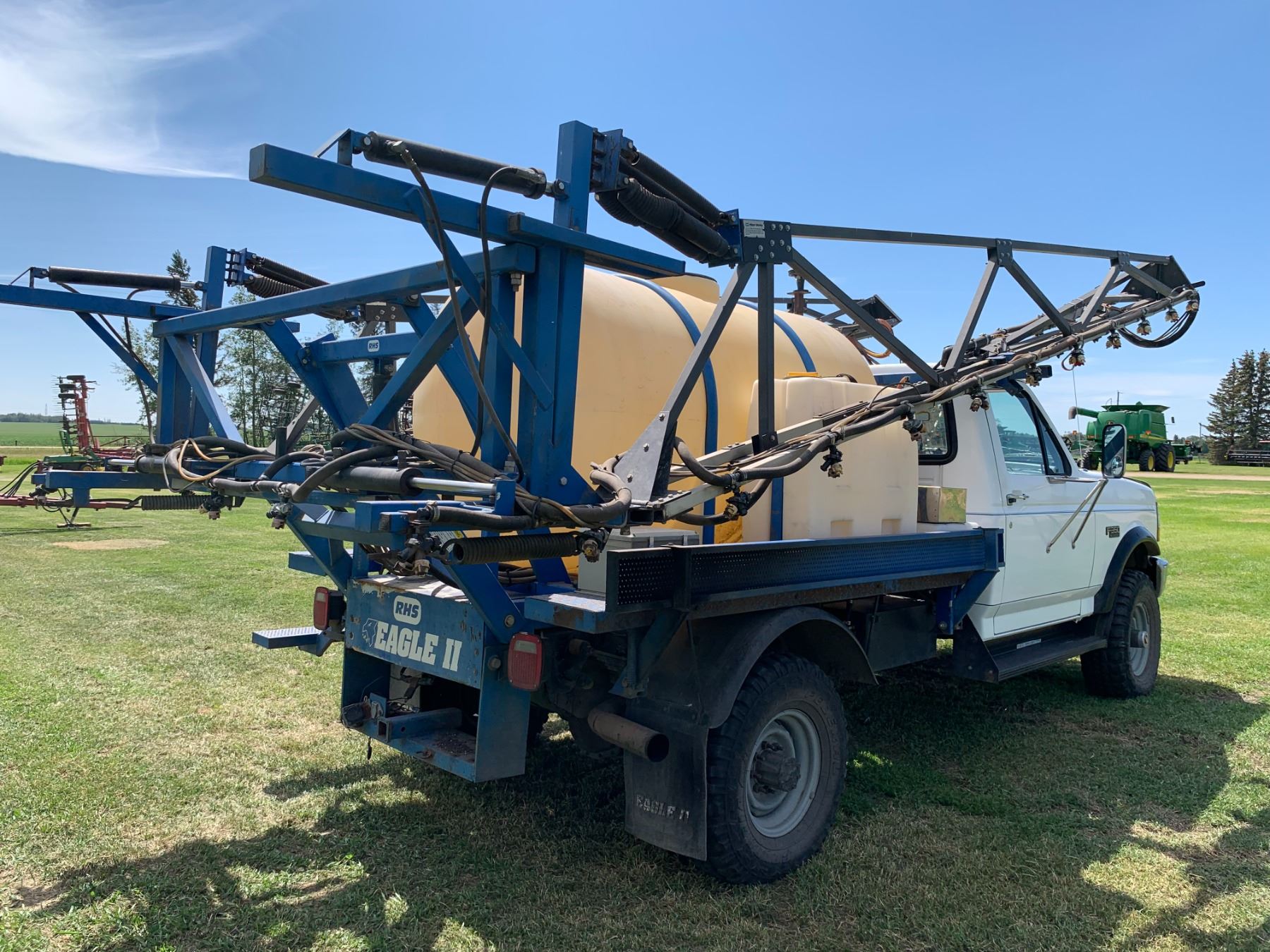 1993 Ford F350 RHS EAGLE II TRUCK SPRAYER, showing 39,773 km, LT285/75R16 tires, SN. 1FDKF38M9PNA45835, 3,578 hrs, 60 ft, 7.3 Diesel, Standard Trans, orig. owner, shedded, 550-gal tank, triple nozzle, oversize rad, Outback lightbar, 30-gal rinse tank & foam marker, new batteries