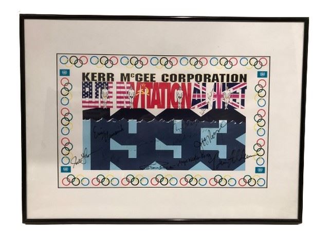 1993 Kerr McGee Corporation Elite Invitational Meet framed and signed Olympic poster.
