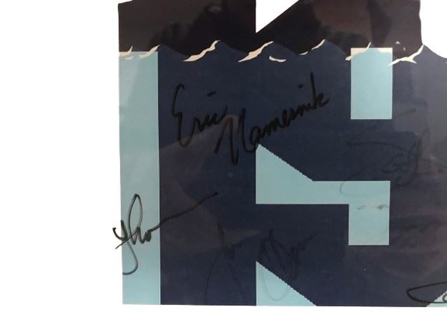 Frame has been professionally framed, and poster is signed by members of the 1992 U.S. Olympic swim team, including Eric Namesnik, Angie Wester-Krieg, Jeffrey Rouse and others.