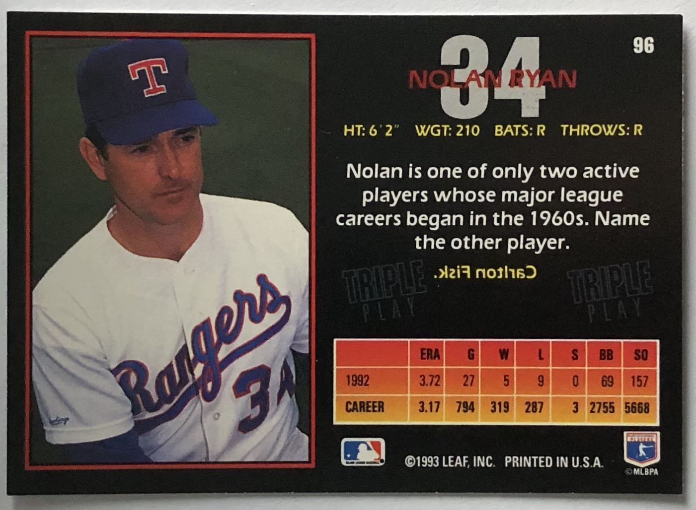 Card #96 MLB, baseball, hall of fame