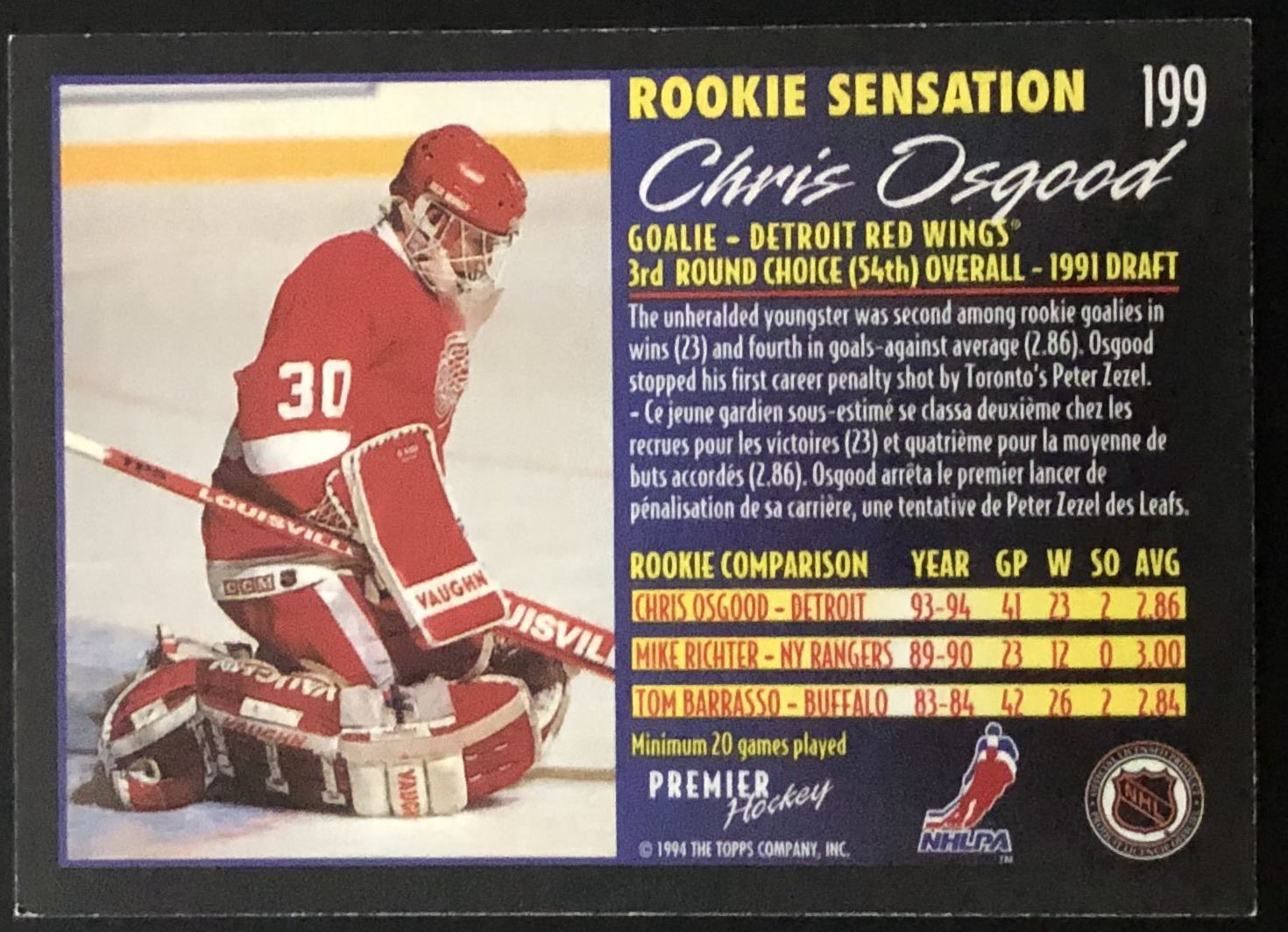 Card #199 hockey, NHL, rookie, OPC