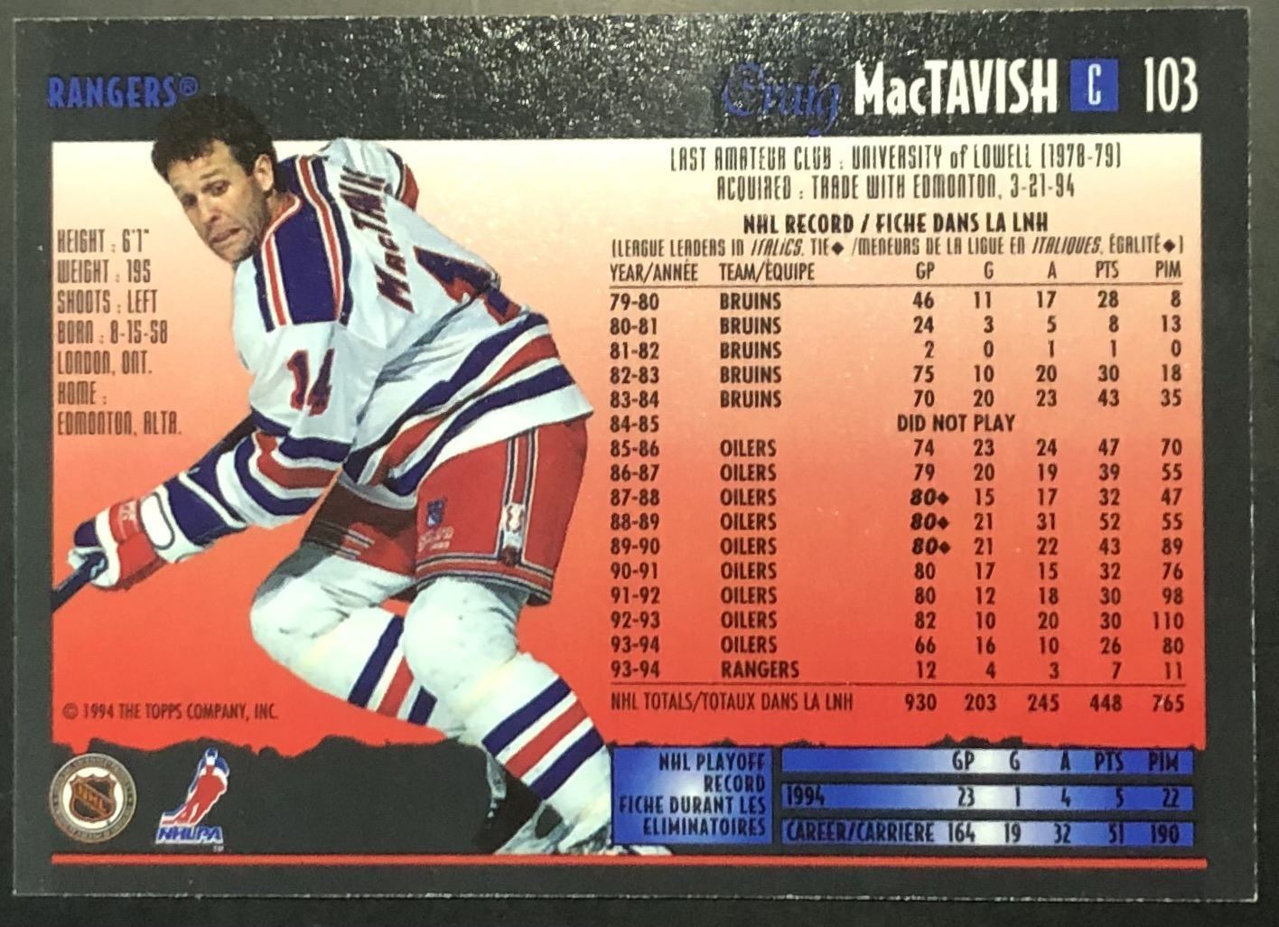 Card #103 NHL, hockey, OPC