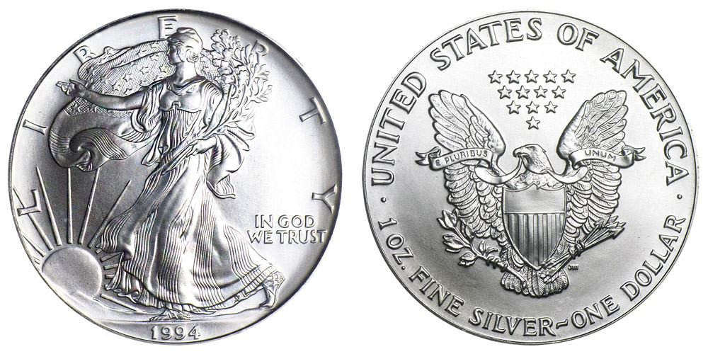 One 1994 American Silver Eagle .999 Fine Silver Dollar Coin.