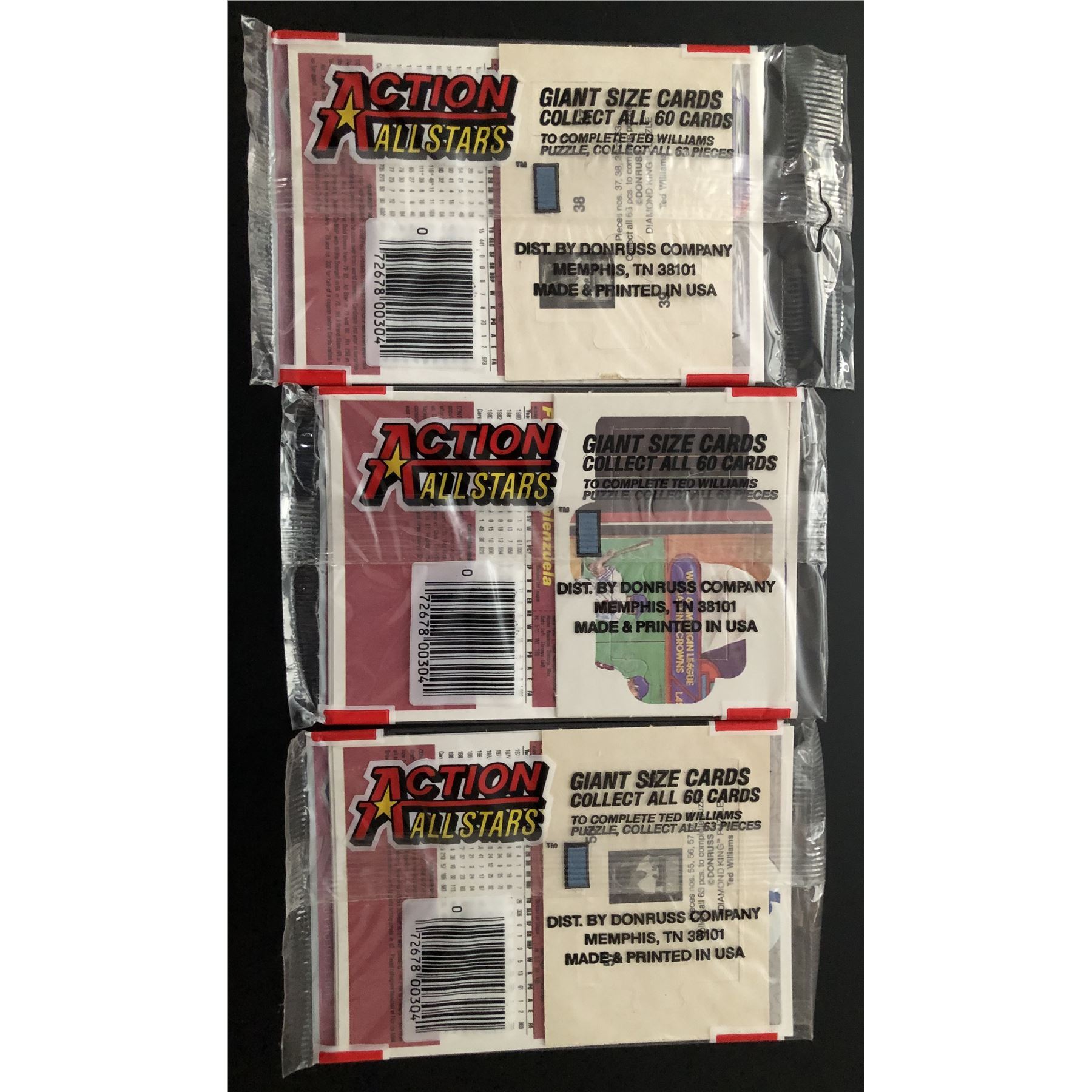 E3 packs, each containing 5 cards & puzzle pieces MLB, baseball