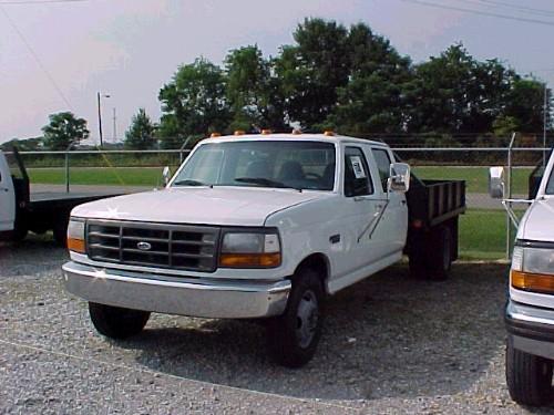 1996 FORD F350 CREW CAB FLATBED TRUCK, S/N B77353, V8 GAS, A/T, P/S, 9' BED, 103,034 MI