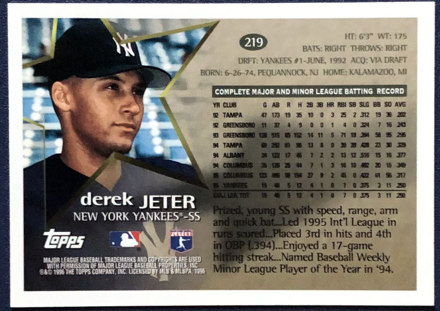 Card #219 MLB, baseball, hall of fame, rookie