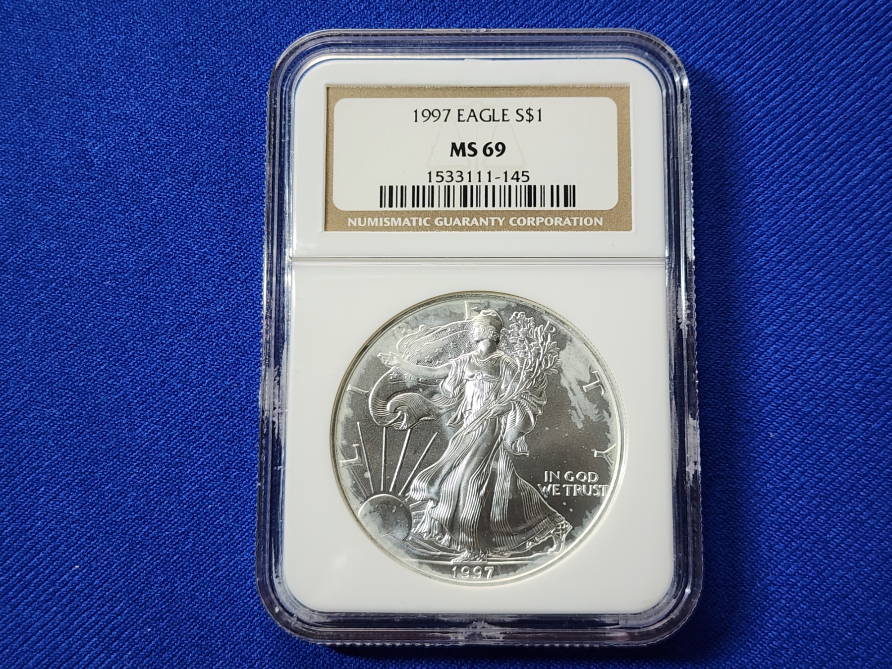 1997 $1 American Siver Eagle 1 oz Fine Silver Graded by NGC MS 69