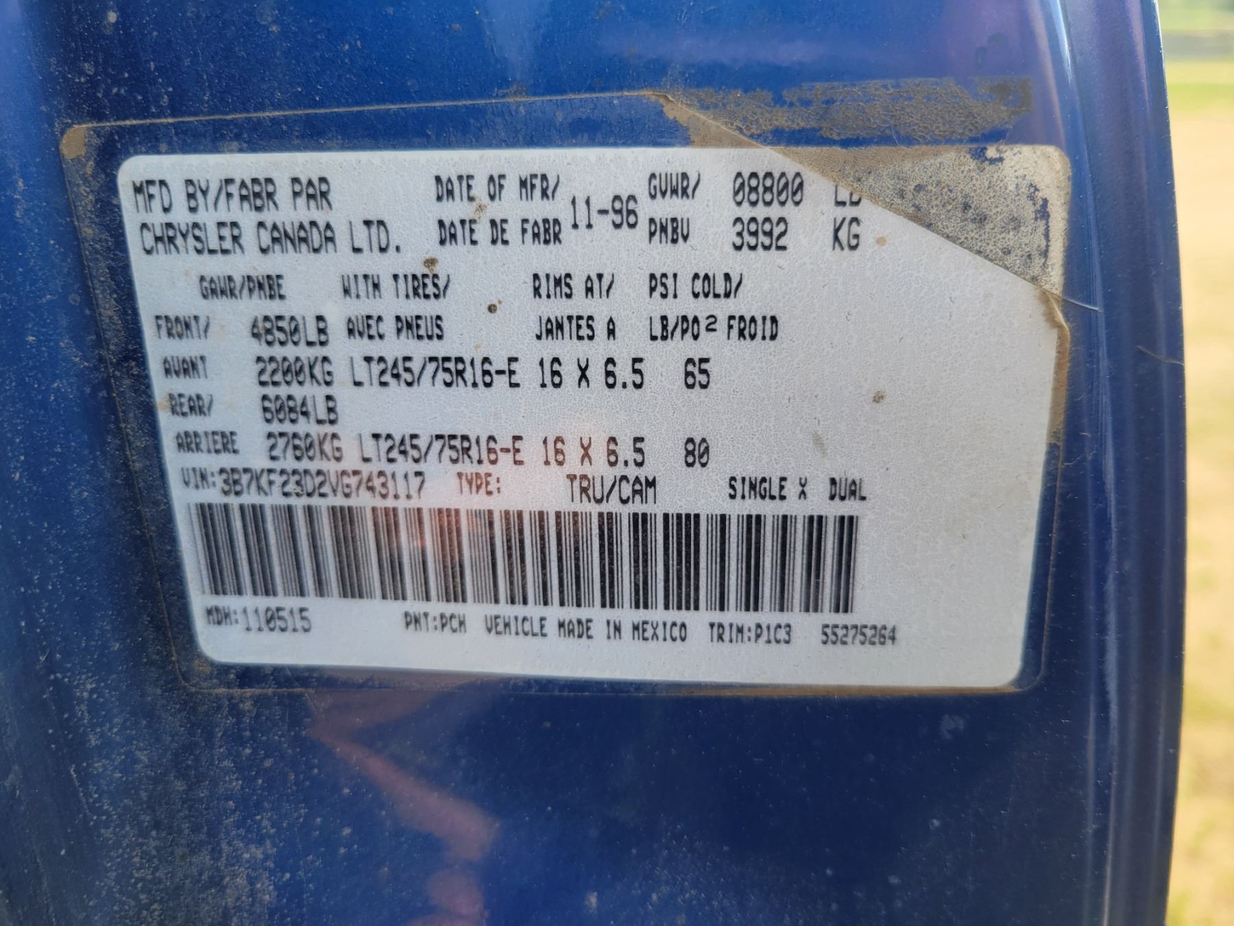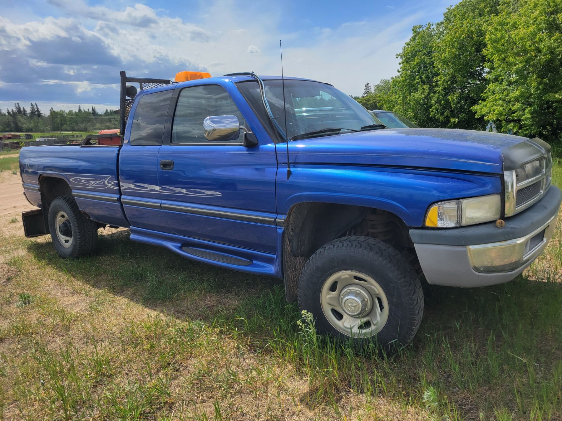 1997 Dodge Cummins diesel 4x4 extended cab.Auto,Headache rack,light, amber light. Trailer brake control. Remote start w/temp control. Trans.rebuild in 2004. Approx 281,877km. VIN 3B7K23D2VG743117.