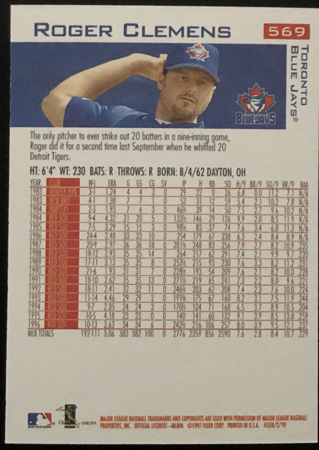 Card #569 baseball, MLB